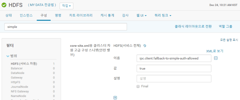 다음은 kerberos가 적용된 hadoop Secure Mode일 때 설정이다. 다음 설정을 추가해준다.